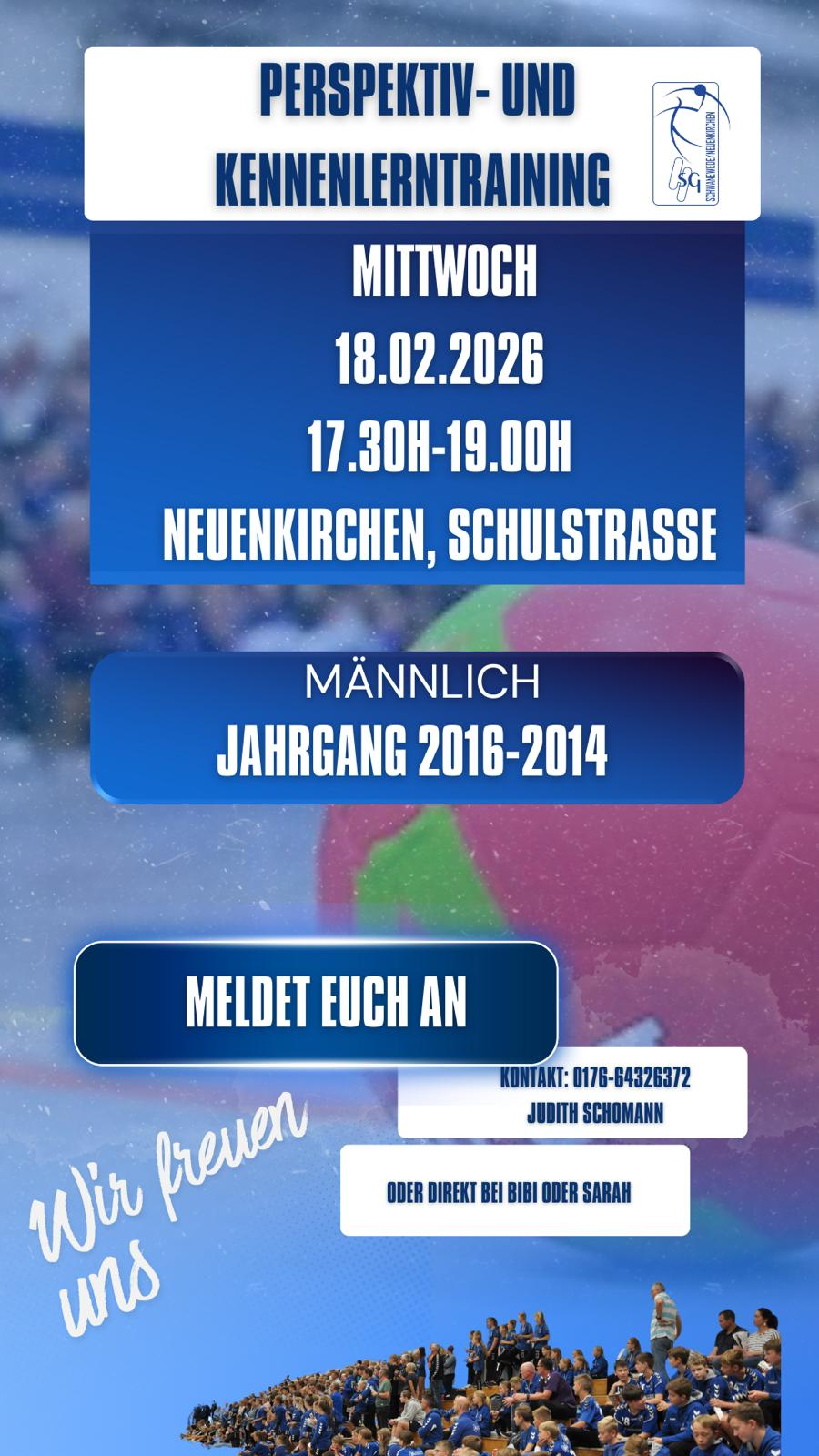 Du bist Jahrgang m 2014 bis 2016 oder schon aktiver Spieler, der in der nächsten Saison in der mD spielt? Dann komm am 18.02.2026 um 17.30 in die Halle in der Schulstraße Neuenkirchen.